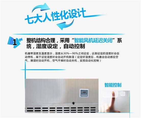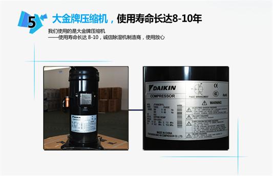 由風扇將潮濕空氣吸入機內,通過壓縮機制冷系統將蒸發器表面降到空氣的露點溫度以下,此時潮濕的空氣經過蒸發器時,空氣中的水會分解出來并附在蒸發器表面(注:就像夏天我們從冰箱拿出一瓶水,一會瓶子的外面有一層冷凝水一樣的原理),水會順著蒸發器上的親水箔到積水托盤再流到水箱或排水管排出,除濕過的干燥冷空氣經過冷凝器加熱后排出機外,如此循環使內外溫度降低。
