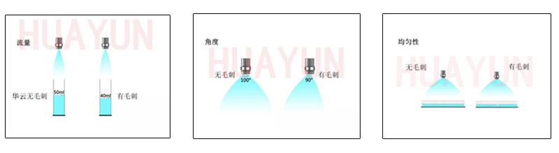 此款產品在氣壓1公斤的情況下即可發(fā)揮良好的霧化效果,擴散距離長達5米,噴霧量可通過更換噴嘴決定,高精細切割加工,內置氣缸控制,外接氣源和水源,內部結構緊密度要求高,噴嘴需去毛刺,清除針要經久耐用。噴嘴不滴水。對于水質不是很好的應用環(huán)境提供了很好的解決方案。
