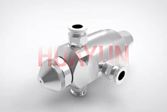 此款產品在氣壓1公斤的情況下即可發(fā)揮良好的霧化效果,擴散距離長達5米,噴霧量可通過更換噴嘴決定,高精細切割加工,內置氣缸控制,外接氣源和水源,內部結構緊密度要求高,噴嘴需去毛刺,清除針要經久耐用。