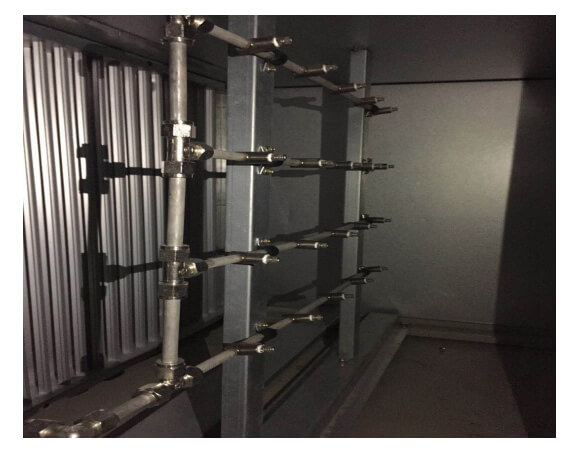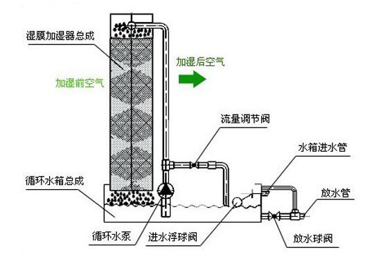 空調機組加濕,是通過水箱中的水輸送到加濕器頂部的淋水器,水均勻地淋到濕膜的頂部,淋水器確保水均勻分配到濕膜材料上,水在重力作用下沿濕膜材料向下浸透,淋濕濕膜內部的所有層面,同時被濕膜材料吸收,形成均勻的水膜.