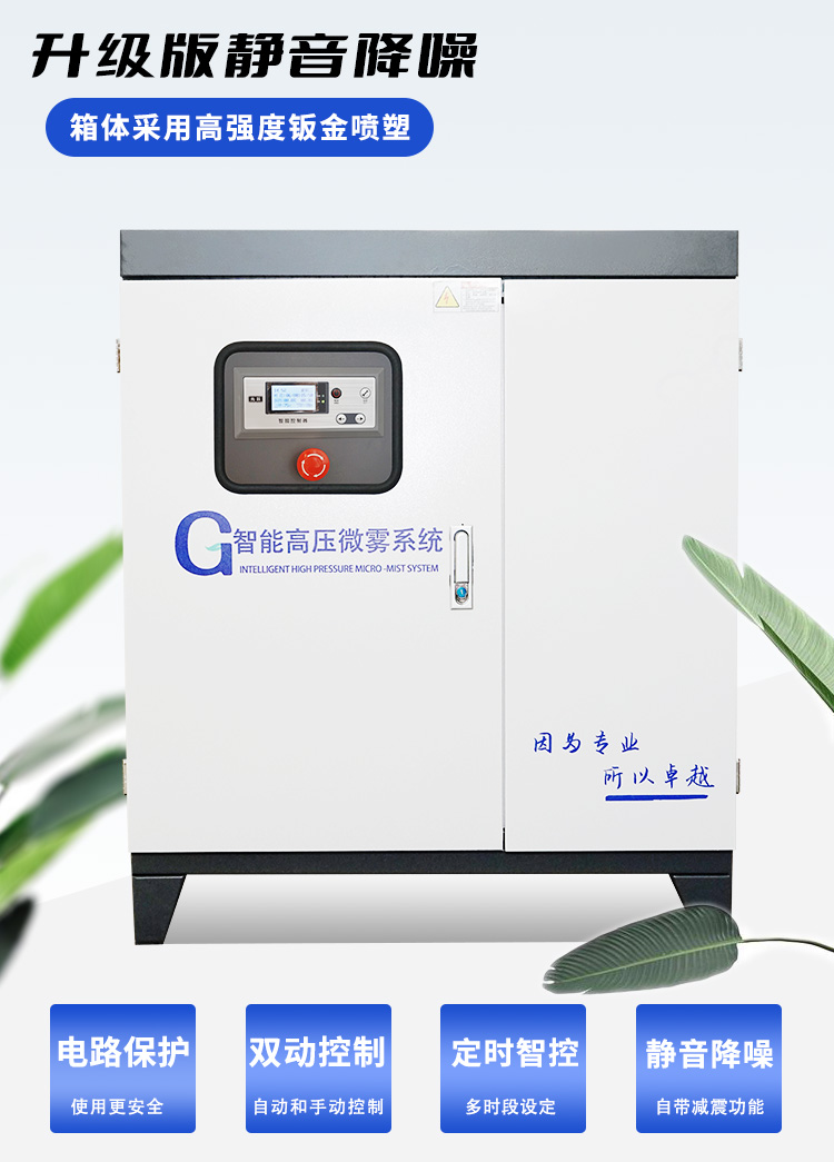 4、耗水量小、無二次污染;設備投入小,運行、維護費用低,使用高壓噴霧不僅為車間節流,同時綠色環保,保護環境也是現代企業不能推托的責任。